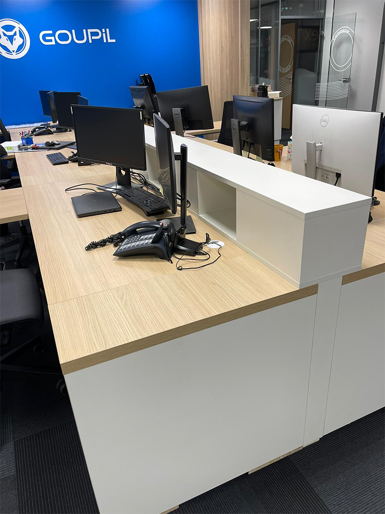 Nous avons accordé une attention particulière à l’agencement des volumes, à l’ergonomie du mobilier professionnel, et à la cohérence esthétique globale, pour offrir un environnement de travail à la fois efficace, convivial et identitaire.