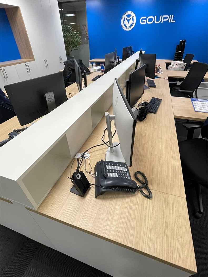 Nous avons conçu un espace de travail innovant, fluide et inspirant, pensé pour répondre aux besoins spécifiques des équipes d’ingénierie de Goupil. Le design architectural mêle sobriété, végétation intérieure, et codes couleur en lien avec l’identité de marque.