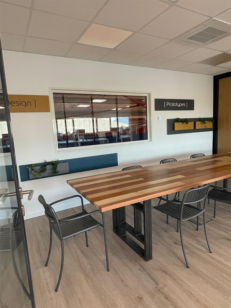 Un projet complet et stimulant, allant de l’espace d’accueil jusqu’au showroom, en passant par un bureau d’études de 300 m² situé en mezzanine dans l’un des tout nouveaux bâtiments du site.