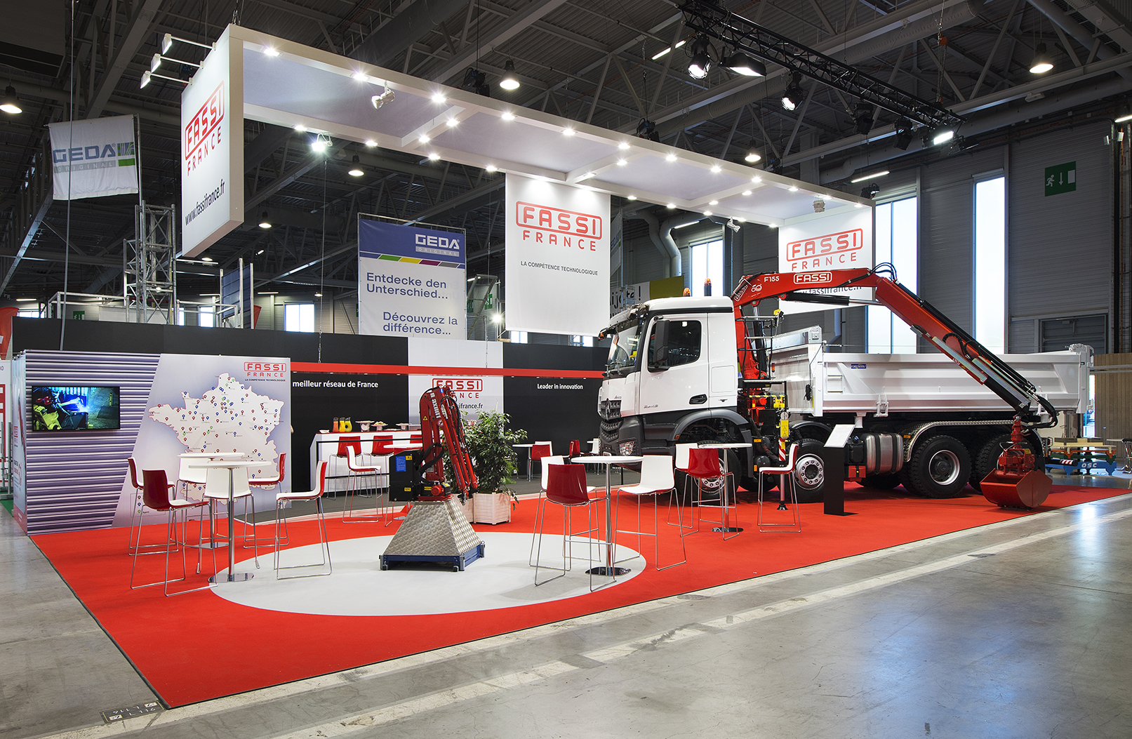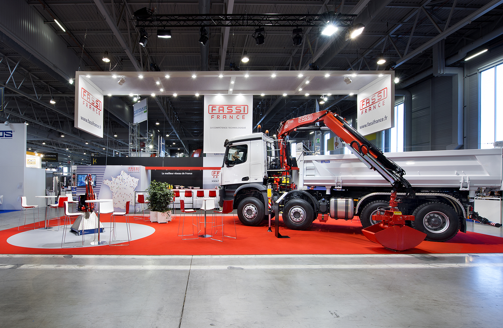 Nous avons accompagné Fassi France, expert reconnu en matériels de levage et manutention, lors de sa participation au salon INTERMAT, en assurant la maîtrise d’œuvre complète du stand. Dans un environnement fortement technique, notre mission consistait à garantir une exécution rigoureuse et sécurisée du projet.